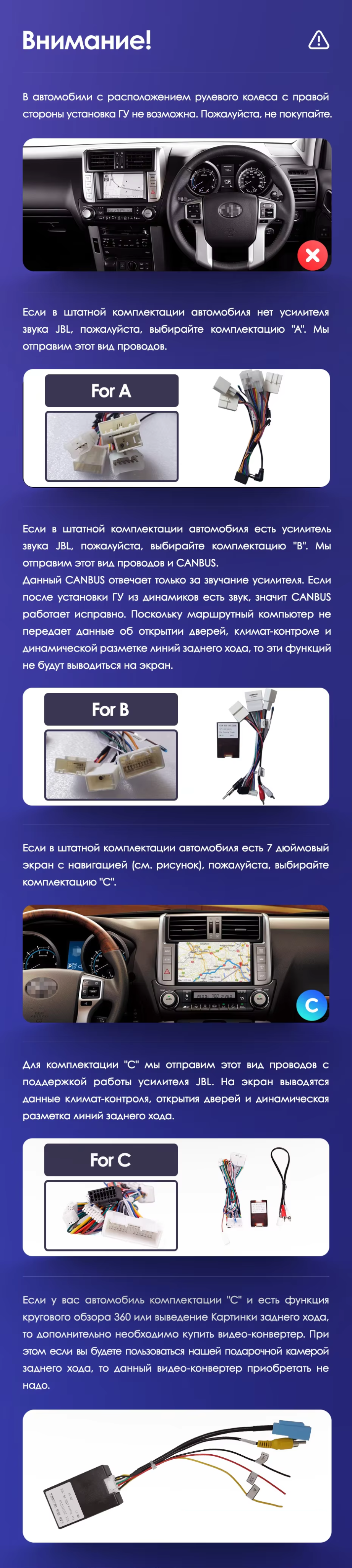 | Дополнительные аксессуары | USB-видеорегистратор, TPMS, передние парктроники, диагностический адаптер OBD | USB-видеорегистратор, TPMS, передние парктроники, диагностический адаптер OBD | USB-видеорегистратор, TPMS |