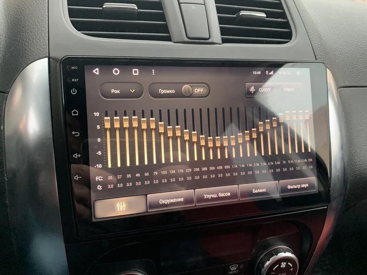 Защитное стекло 2,5D имеет слегка скругленные грани. Эта особенность делает его практически незаметным в районе краев экрана магнитолы, где он ограничен рамками корпуса.