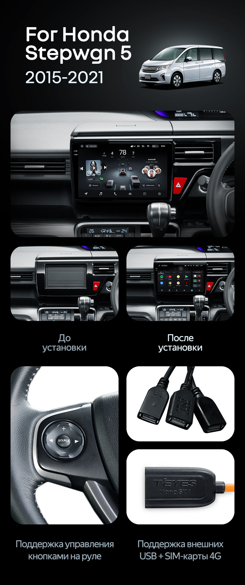 Штатная магнитола Teyes CC4 Pro 12/256 Honda Stepwgn 5 (2015-2021) правый руль - купить всего за 74 900 руб. в интернет-магазине в СПб Teyes.com.ru. ✓ Самый лучший выбор мультимедиа ✓ Лучшая замена штатному ГУ ✓ Тел. +7 (800) 775-31-74