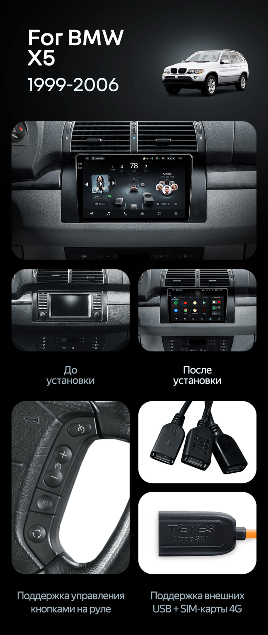 Штатная магнитола Teyes CC4 Pro 8/128 BMW X5 E39 E53 (1999-2006) - купить всего за 65 420 руб. в интернет-магазине в СПб Teyes.com.ru. ✓ Самый лучший выбор мультимедиа ✓ Лучшая замена штатному ГУ ✓ Тел. +7 (800) 775-31-74