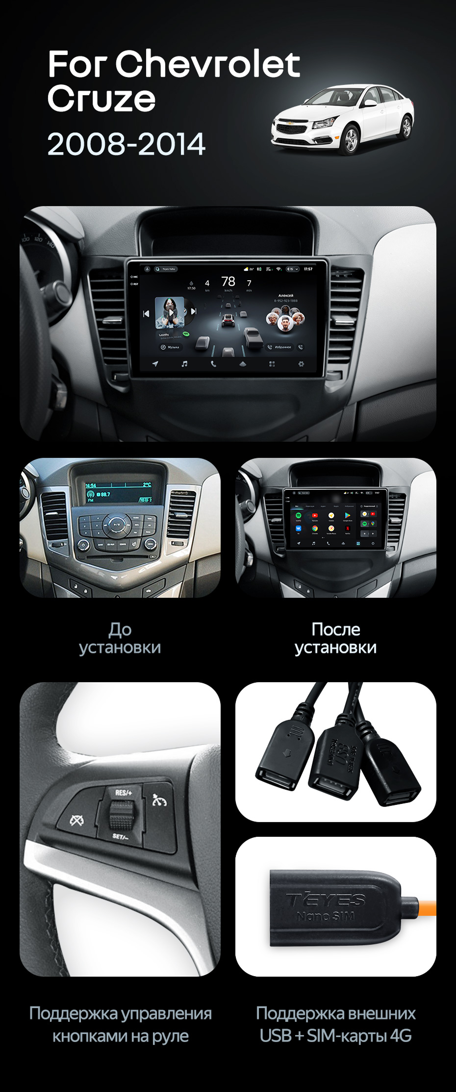Штатная магнитола Teyes CC4 Pro 8/128 Chevrolet Cruze J300 (2008-2014) - купить всего за 64 470 руб. в интернет-магазине в СПб Teyes.com.ru. ✓ Самый лучший выбор мультимедиа ✓ Лучшая замена штатному ГУ ✓ Тел. +7 (800) 775-31-74