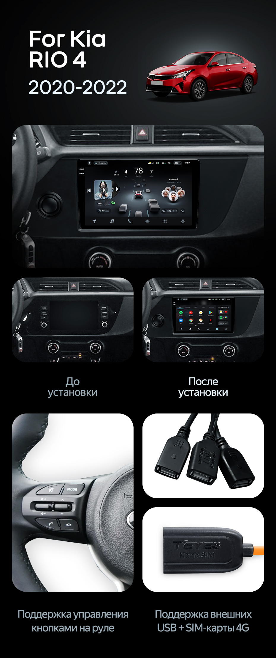 Штатная магнитола Teyes CC4 Pro 8/128 Kia Rio 4 IV FB (2020-2022) - купить всего за 64 670 руб. в интернет-магазине в СПб Teyes.com.ru. ✓ Самый лучший выбор мультимедиа ✓ Лучшая замена штатному ГУ ✓ Тел. +7 (800) 775-31-74