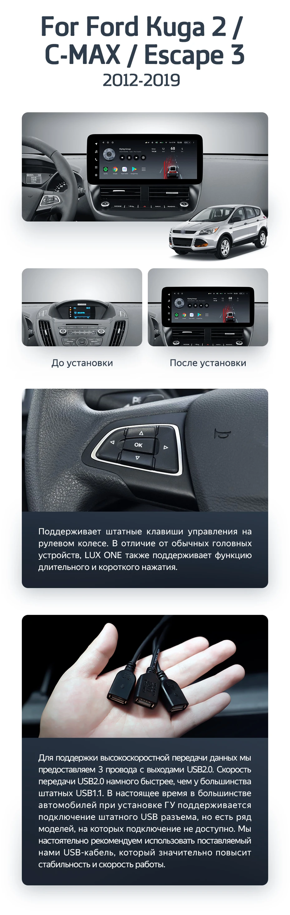 Штатная магнитола Teyes LUX ONE 6/128 Ford Escape 3 (2012-2019) - купить всего за 52 800 руб. в интернет-магазине в СПб Teyes.com.ru. ✓ Самый лучший выбор мультимедиа ✓ Лучшая замена штатному ГУ ✓ Тел. +7 (800) 775-31-74